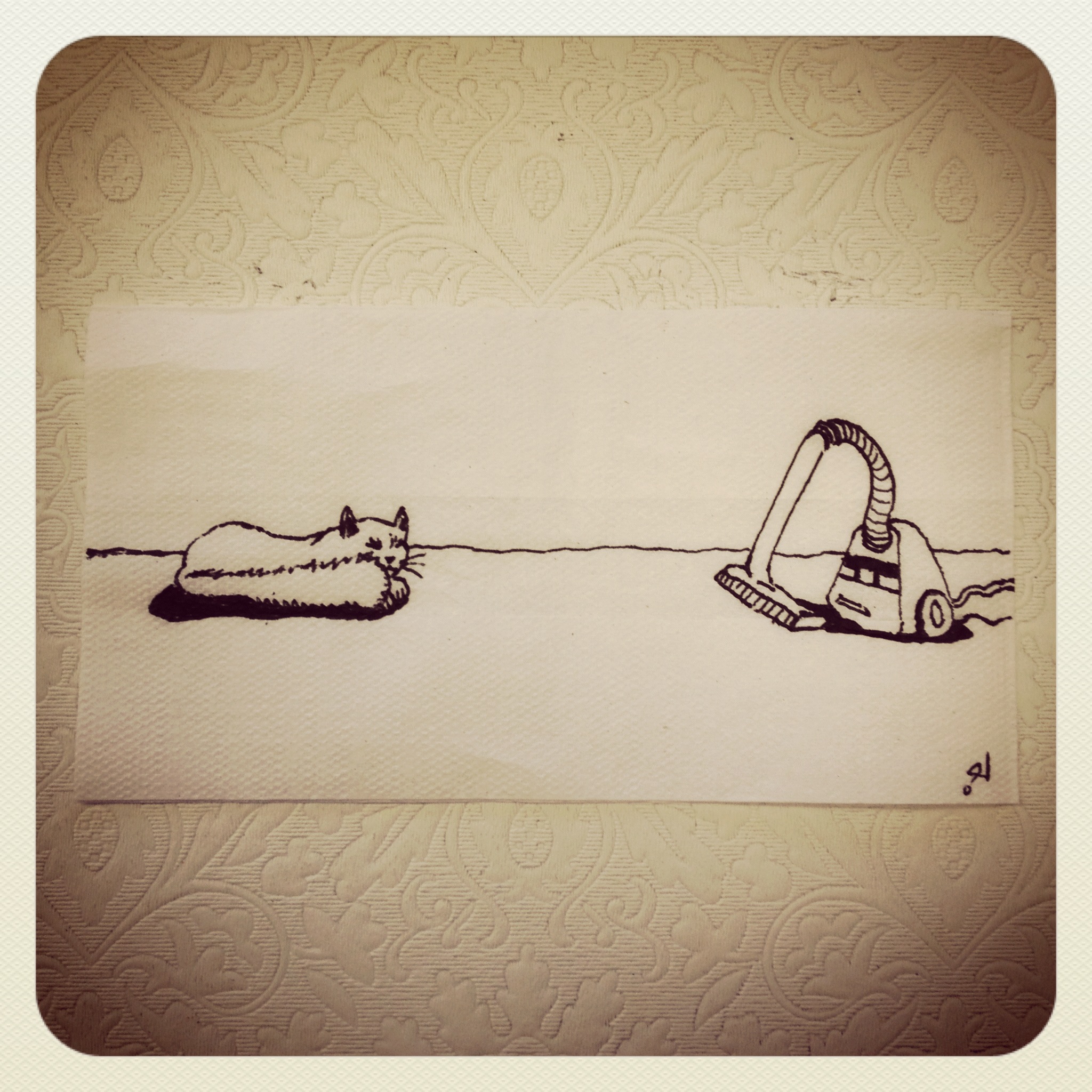 After a double espresso and a big piece of (awesome) Russian cake, I started thinking of how interesting that my cat sees the vacuum cleaner as a school bully. Come to think of it, they need each other so very much and they don’t even know it. Perhaps one day they’ll warm up to each other.